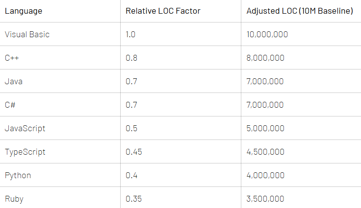 If the VB code were replaced with a higher-level language like Python or Ruby, the 10 million LOC could shrink to as little as 6 million LOC, further easing the team’s workload.